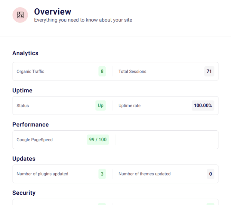 Stay informed with detailed monthly reports on your WordPress website’s performance, updates, security, and backups. Gain clear insights to track progress and ensure ongoing site health.